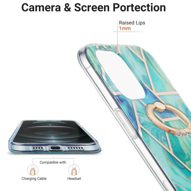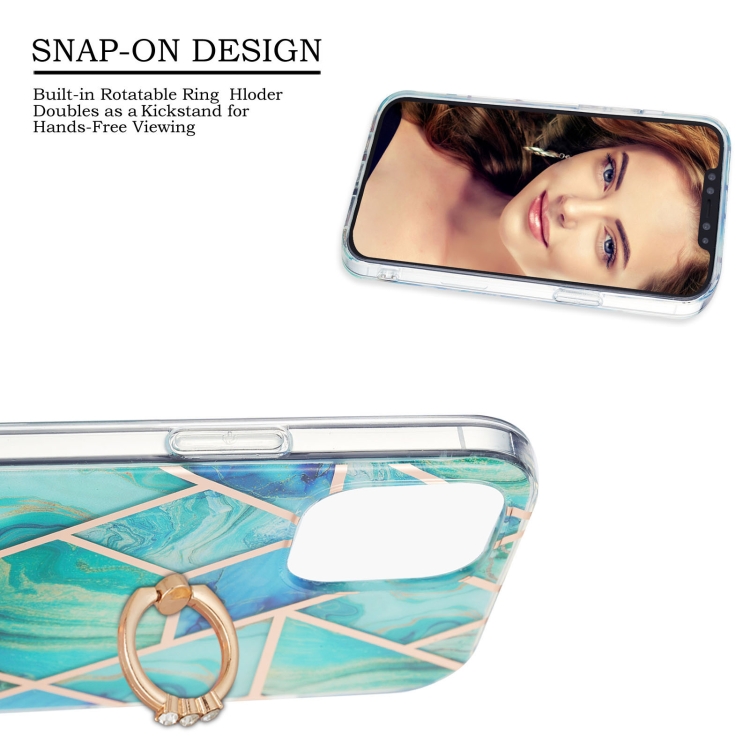 Estuche TPU para iPhone 13 Mini Galvanoplastia Empalme Mármol Patrón Doble Cara con Soporte para Anillo (Verde)