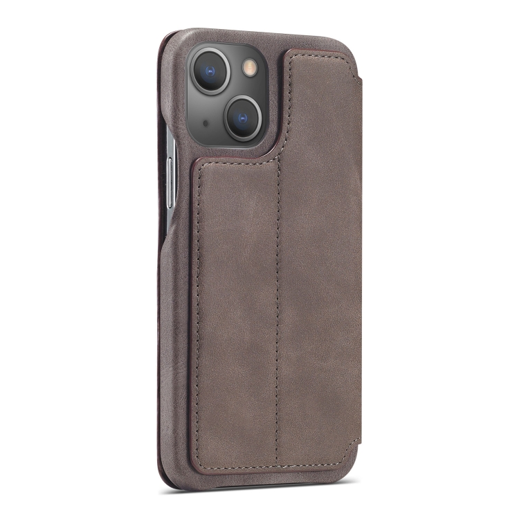 Funda de cuero LC.ImeeKe Hon Ancient Series para iPhone 13 Mini con tapa horizontal, soporte y ranura para tarjeta (Café)