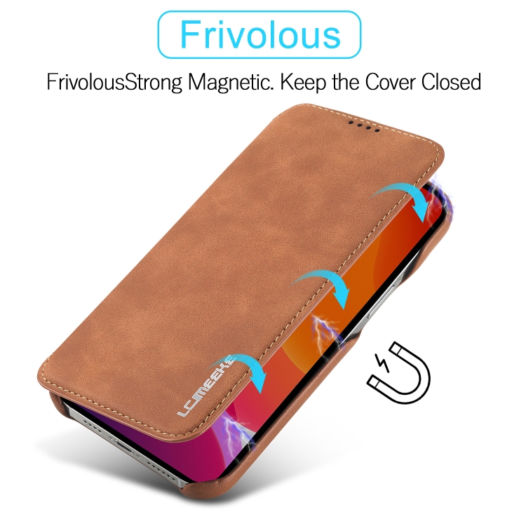 Funda de Cuero LC.ImeeKe Hon Ancient Series para iPhone 13 Mini con Tapa Horizontal, Soporte y Ranura para Tarjeta (Marrón)
