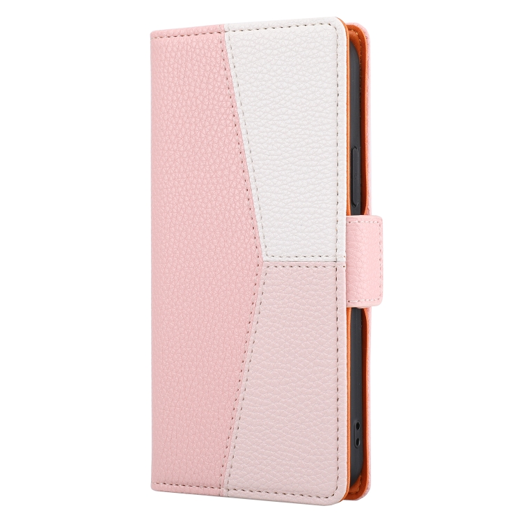 Funda de Cuero para iPhone 13 Mini Litchi Texture con Tapa Horizontal Ranuras Tarjetas Soporte Billetera Marco de Fotos (Rosa)
