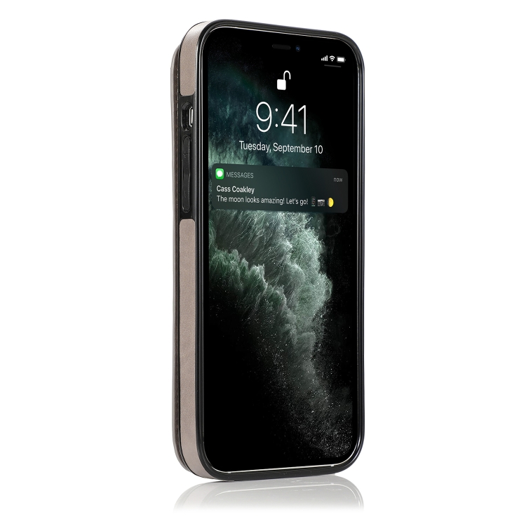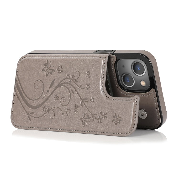 Funda Protectora iPhone 13 Mini PU y TPU con Soporte Ranuras Tarjetas Marco Fotos (Gris)