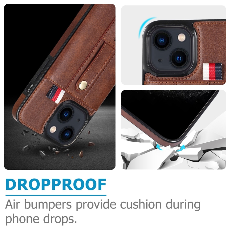 Funda para iPhone 13 Mini Muñequera Kickstand Wallet de Cuero (Marrón)