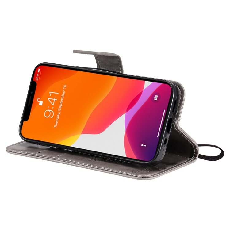 Funda para iPhone 13 Mini Cuero de Pu con Tapa Horizontal, Soporte, Ranuras para Tarjetas, Billetera y Cordón (Gris)