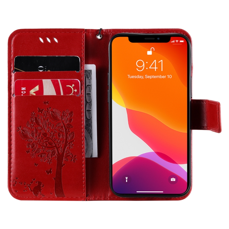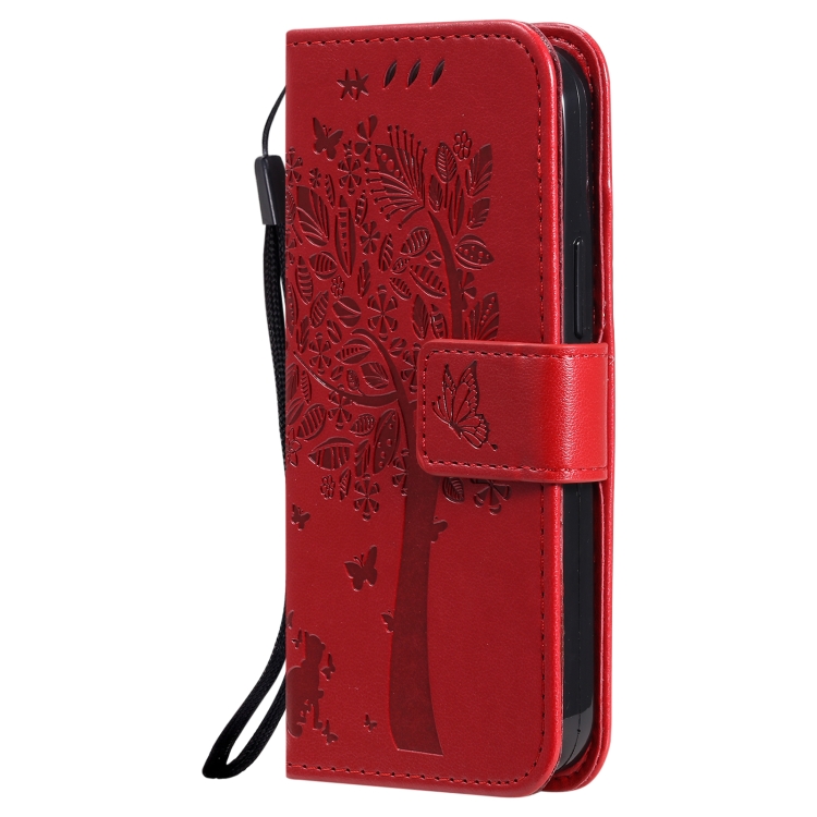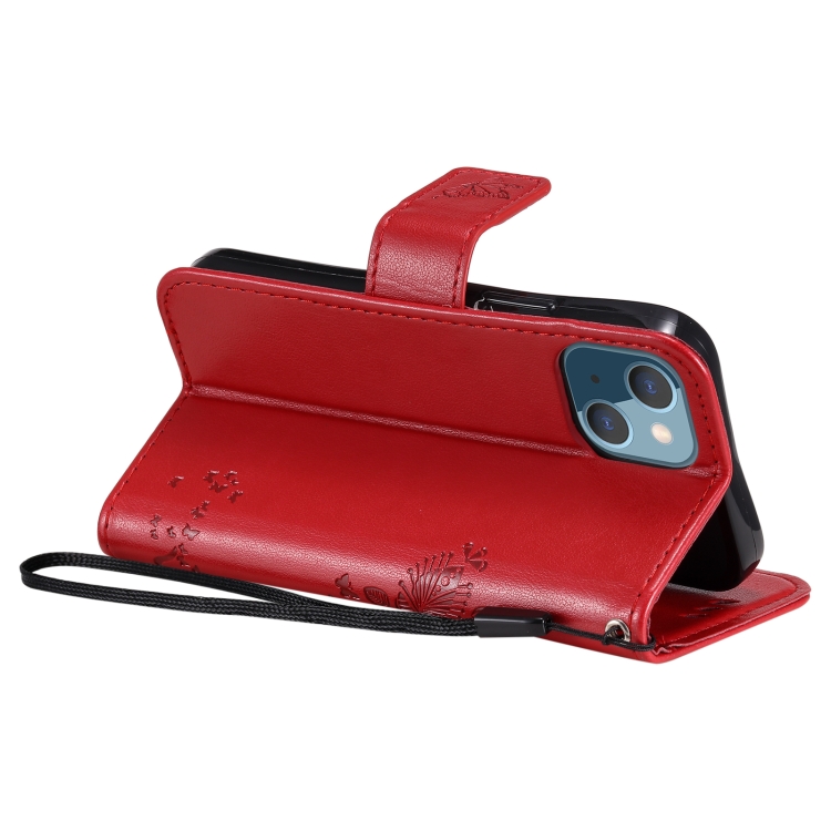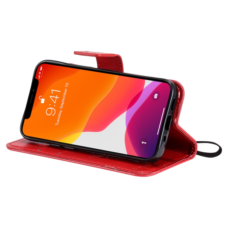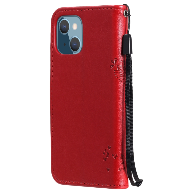 Funda para iPhone 13 Mini Cuero de Pu con Tapa Horizontal Soporte Ranuras para Tarjetas Billetera y Cordón (Rojo)
