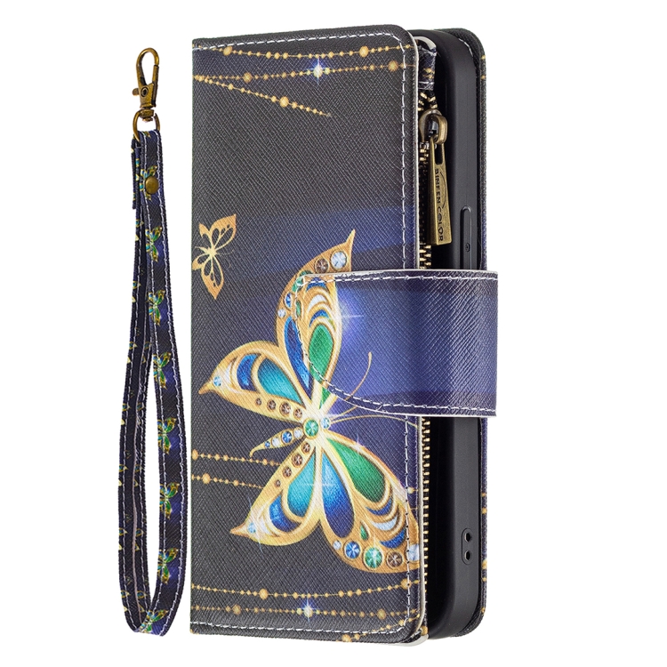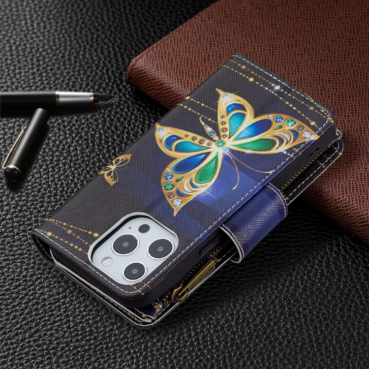 Funda de Cuero para iPhone 13 Mini con Tapa Horizontal Soporte Ranuras para Tarjetas y Billetera (Mariposa Grande)
