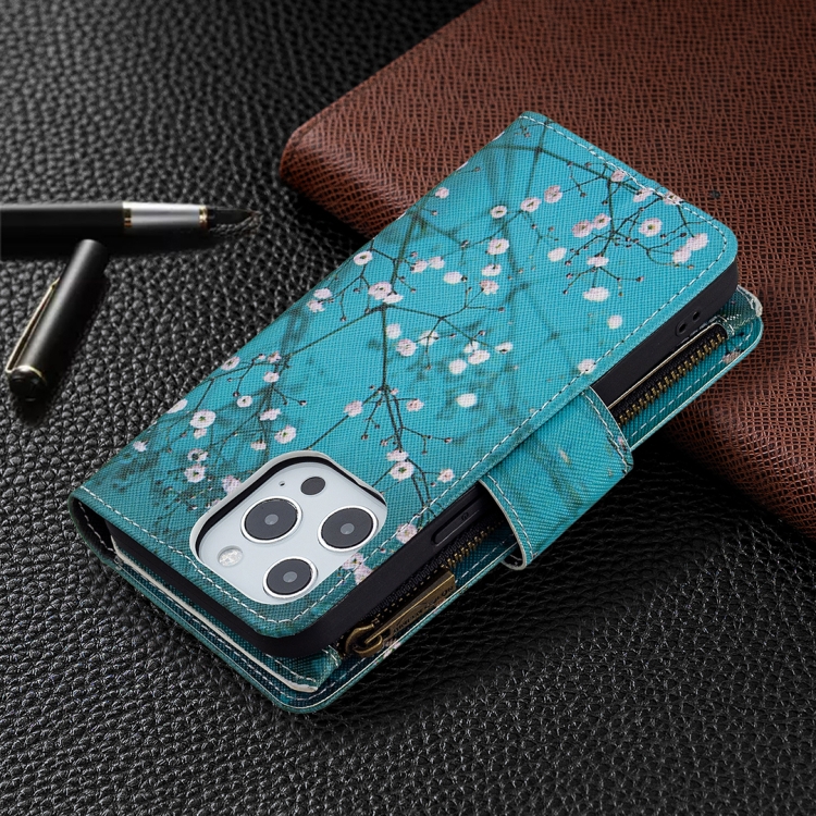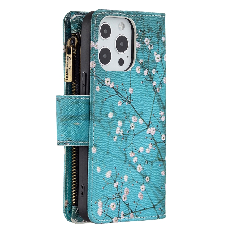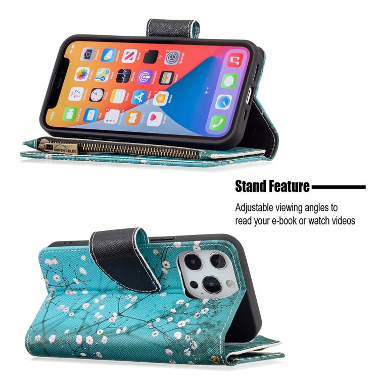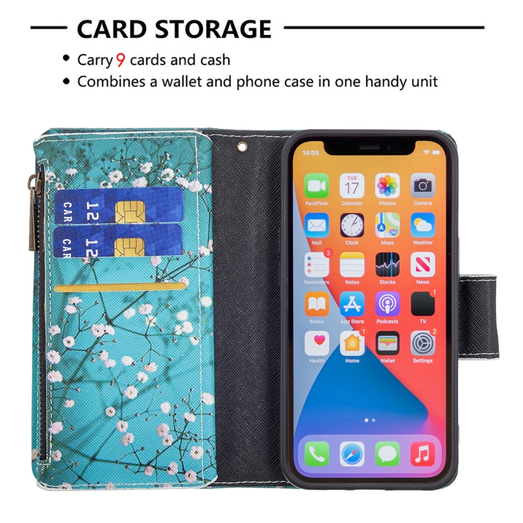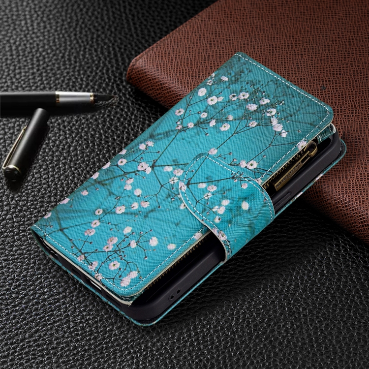 Funda de Cuero para iPhone 13 Mini con Tapa Horizontal y Soporte Patrón Plum Blossom