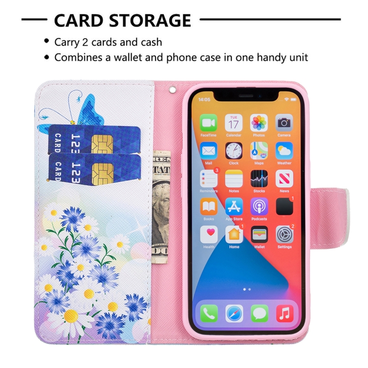 Funda de Cuero iPhone 13 Mini Patrón Dibujo a Color con Tapa Horizontal Soporte y Ranuras para Tarjetas y Billetera (Butterfly Love)