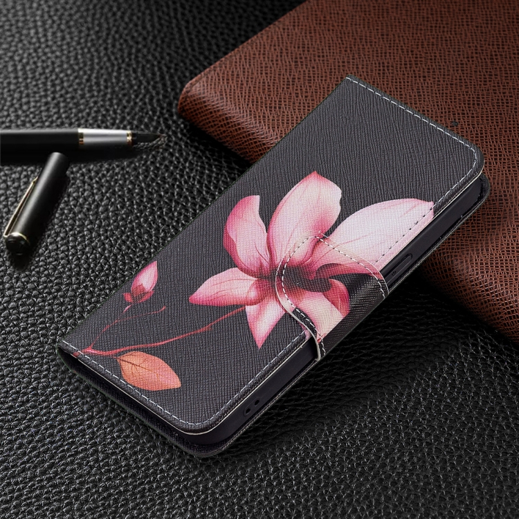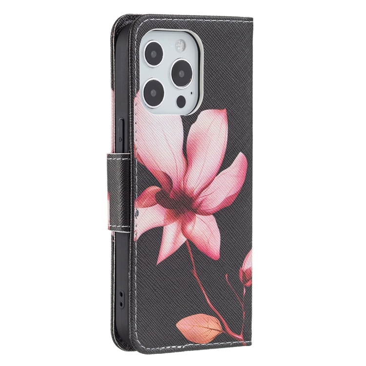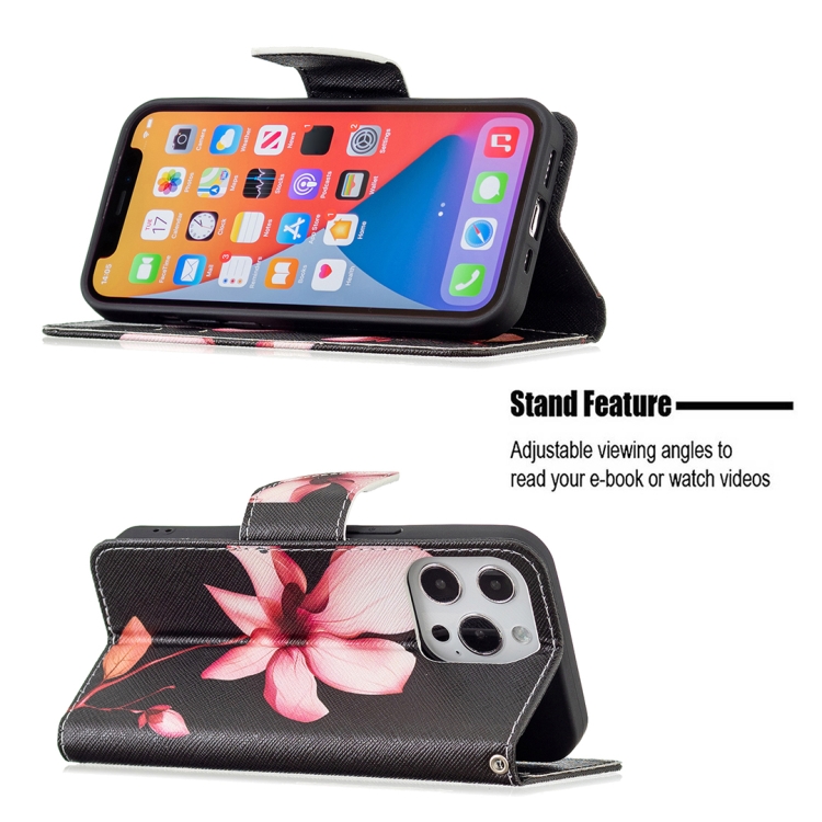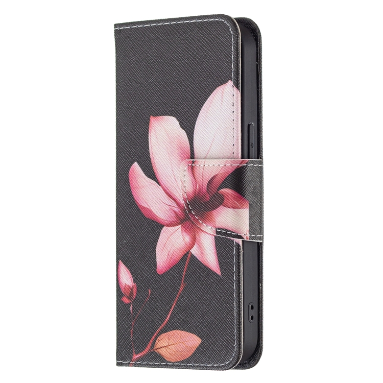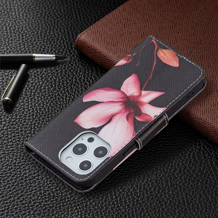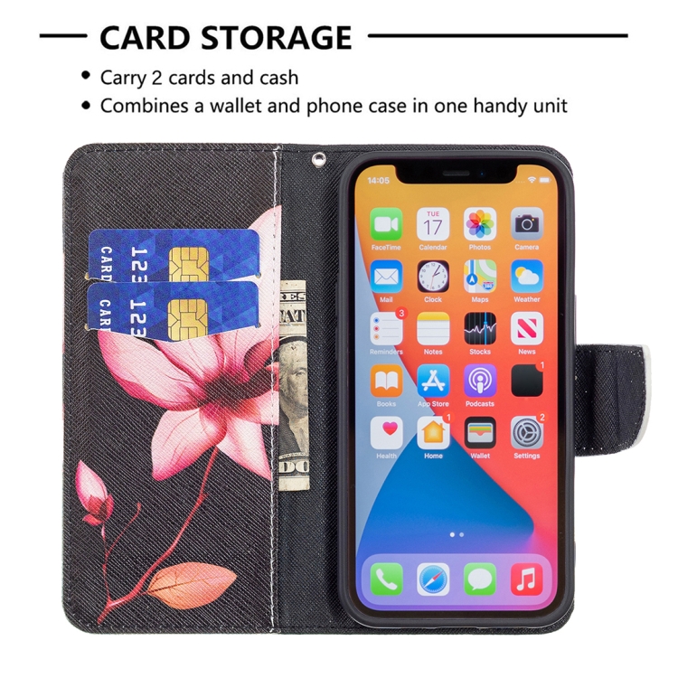 Funda de Cuero para iPhone 13 Mini Patrón Dibujo a Color con Tapa Horizontal Soporte y Ranuras para Tarjetas Billetera (Lotus)