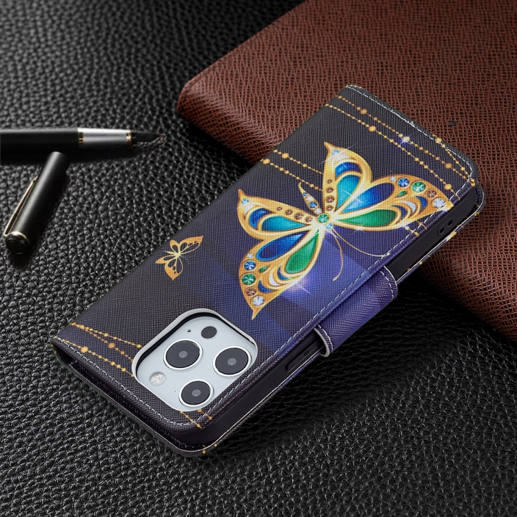 Funda de Cuero para iPhone 13 Mini con Tapa Horizontal Soporte Ranuras para Tarjetas Billetera (Mariposa Grande)