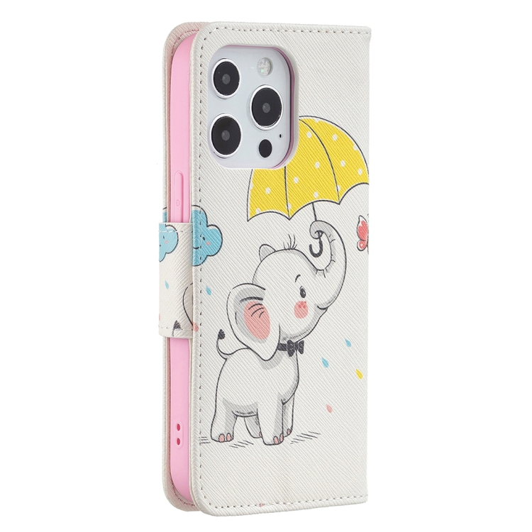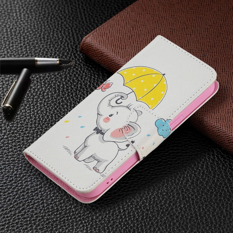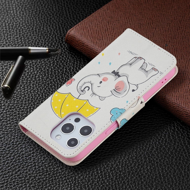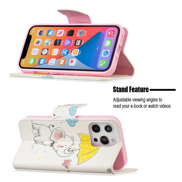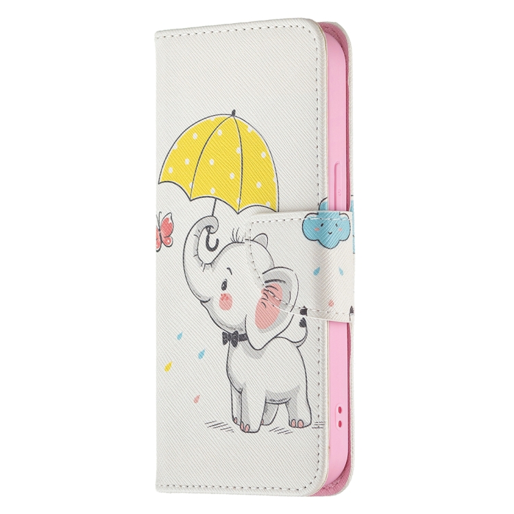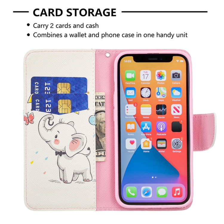 Funda de Cuero iPhone 13 Mini Patrón Dibujo Coloreado Tapa Horizontal Soporte Ranuras Tarjetas Billetera (Elefante)