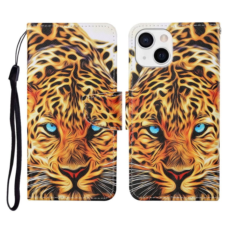 Funda de Cuero para iPhone 13 Mini Patrón de Dibujo Coloreado con Tapa Horizontal (Leopardo Amarillo)