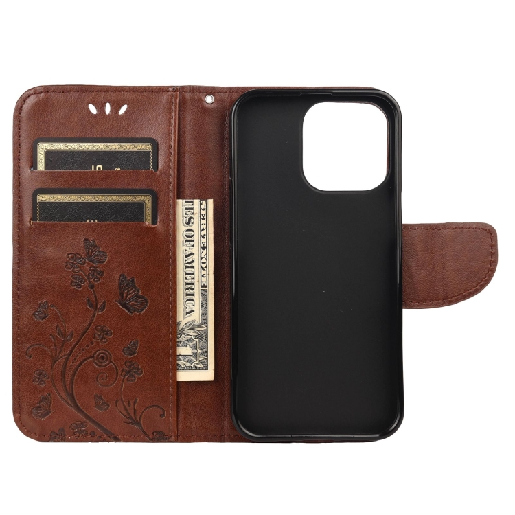 Funda de Cuero para iPhone 13 Mini Patrón de Flores de Mariposa con Tapa Horizontal Soporte Ranuras y Billetera (Marrón)