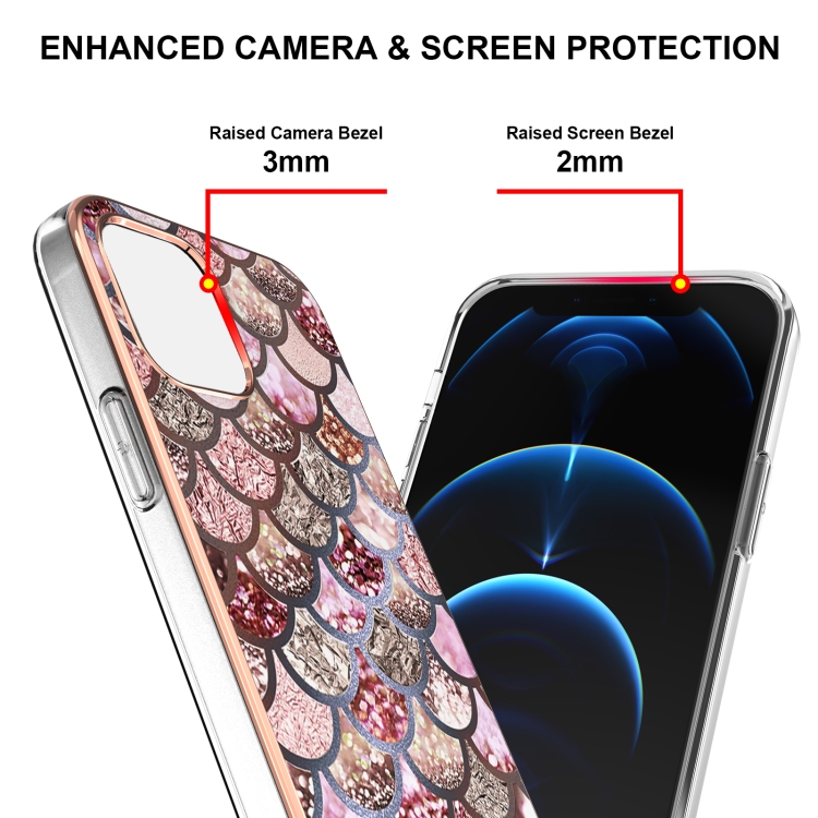 Estuche TPU para iPhone 13 Mini Patrón de Galvanoplastia Imd a Prueba de Golpes (Escamas Rosas)
