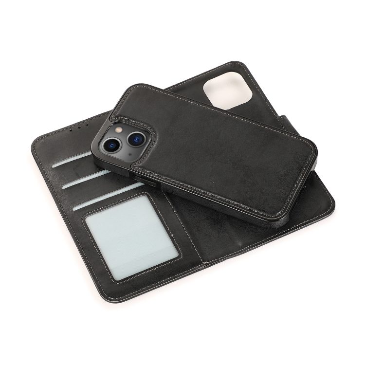 Funda para iPhone 13 Mini Retro 2 en 1 Cuero Tapa Horizontal Desmontable Ranuras para Tarjetas (Negro)
