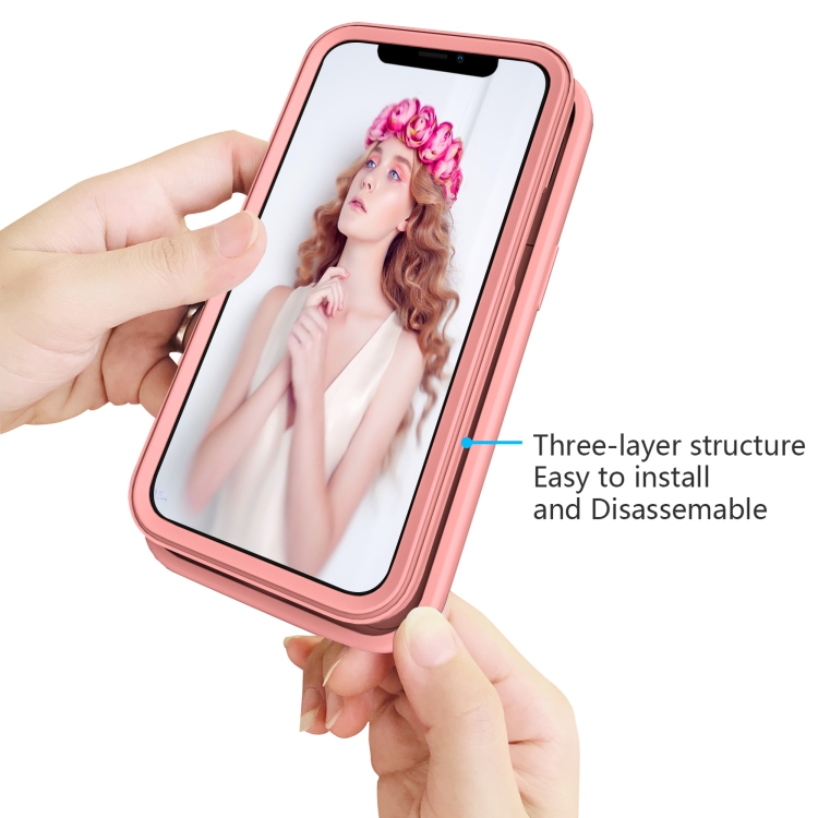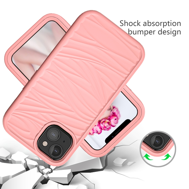 Funda Protectora iPhone 13 Mini Wave Pattern 3 en 1 Silicona y PC a Prueba de Golpes (Oro Rosa)