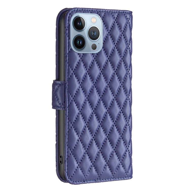 Funda para iPhone 13 Pro Diamond Lattice Wallet de Cuero con Tapa (Azul)