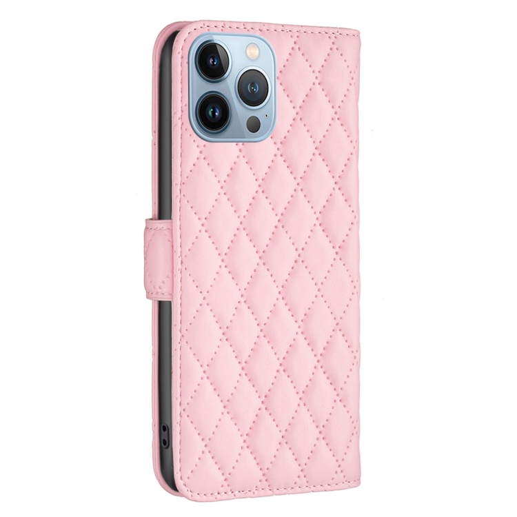Funda para iPhone 13 Pro Diamond Lattice Wallet de Cuero con Tapa (Rosa)