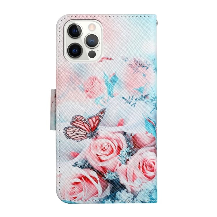 Estuche para iPhone 13 Pro Cuero con Tapa Horizontal Patrón Pintado Soporte Ranura Tarjeta Billetera (Mariposa de Peonía)