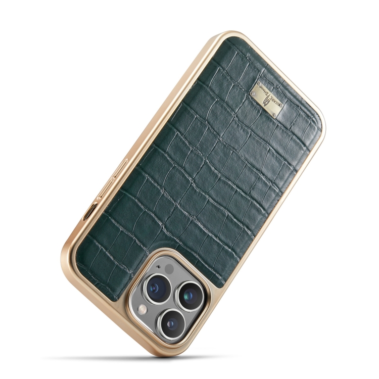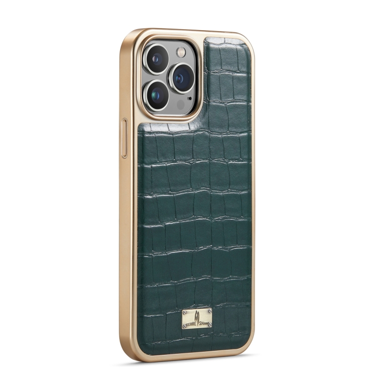 Funda para iPhone 13 Pro Fierre Shann Cocodrilo Textura Galvanoplastia Pu (Verde)