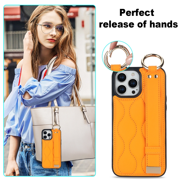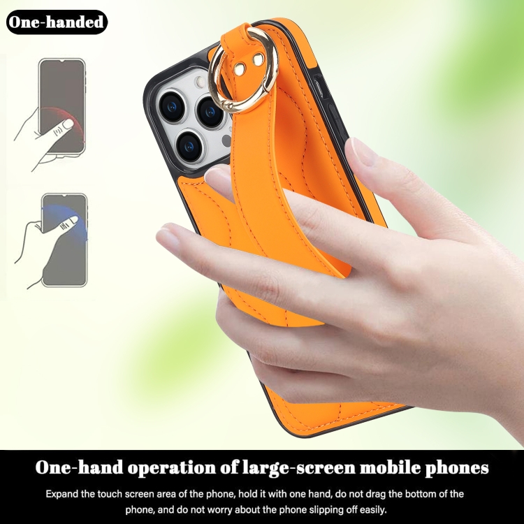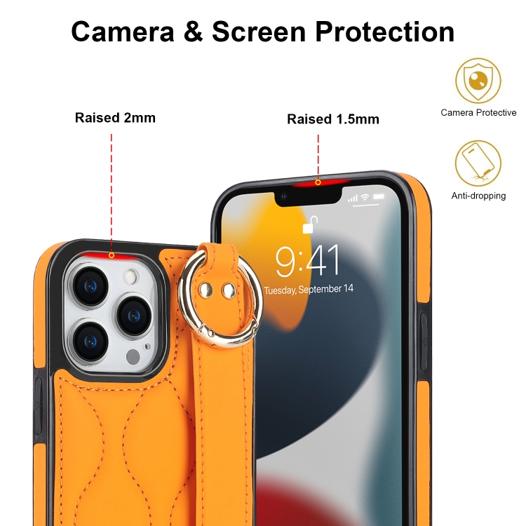 Funda para iPhone 13 Pro Antideslizante de PU con Anillo y Muñequera (Naranja)