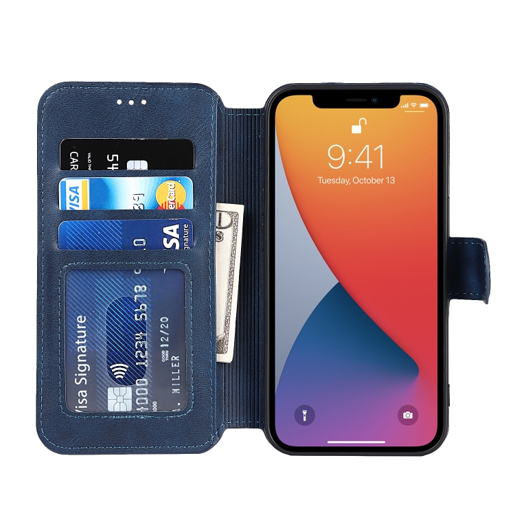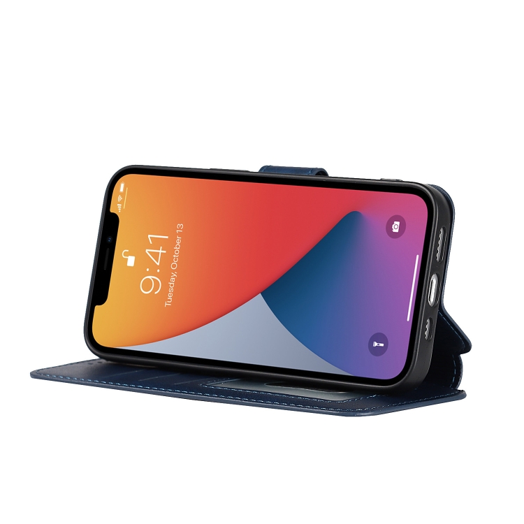 Funda para iPhone 13 Pro Cuero PU y TPU a Prueba de Golpes con Ranuras para Tarjetas Soporte Marco de Fotos Billetera (Azul)