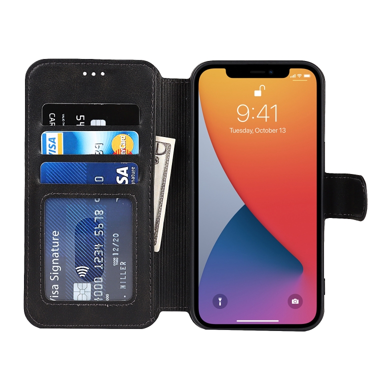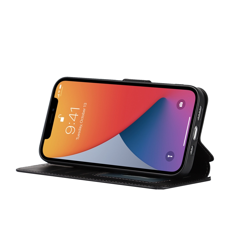 Funda para iPhone 13 Pro Cuero PU + TPU a Prueba de Golpes con Ranuras, Soporte, Marco de Fotos y Billetera (Negro)