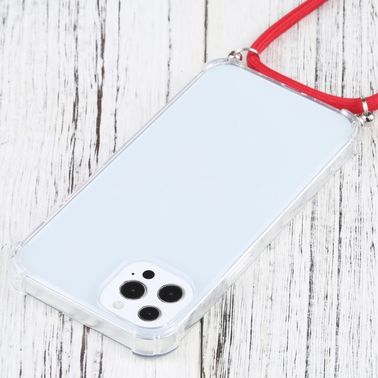 Funda Protectora para iPhone 13 Pro TPU Transparente a Prueba de Golpes Cuatro Esquinas con Cordón (Rojo)