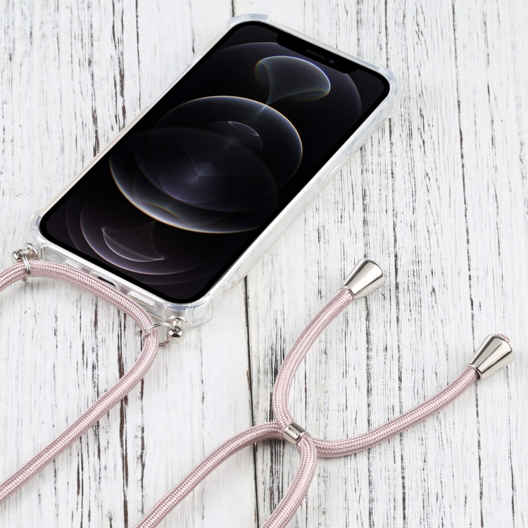 Funda Protectora TPU para iPhone 13 Pro Transparente a Prueba de Golpes con Cordón (Rosa Claro)
