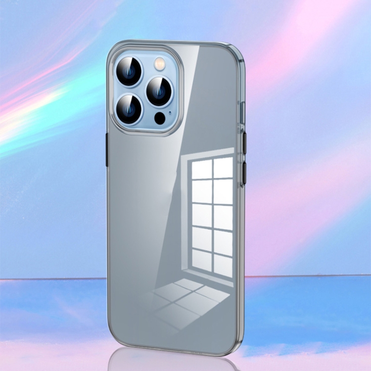 Funda para iPhone 13 Pro con Botón de Metal para Teléfono PC (Negro Transparente)