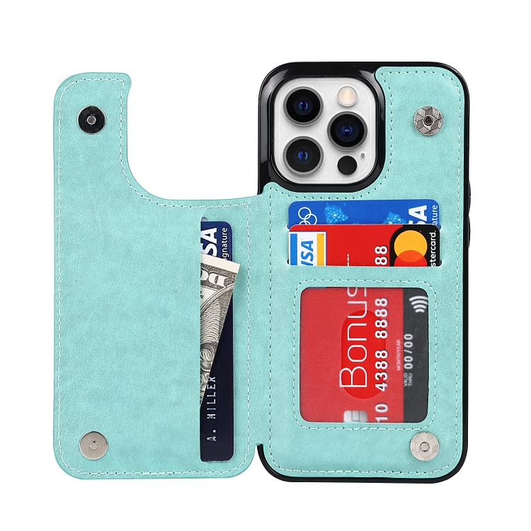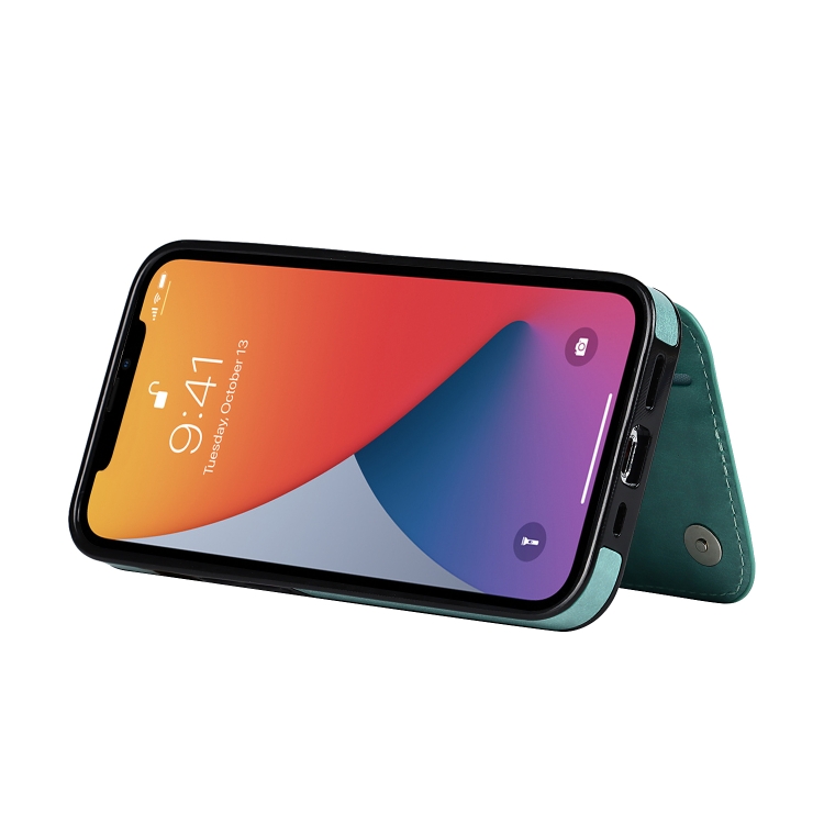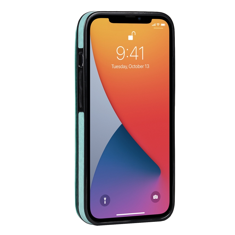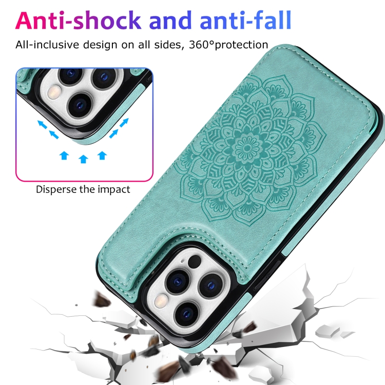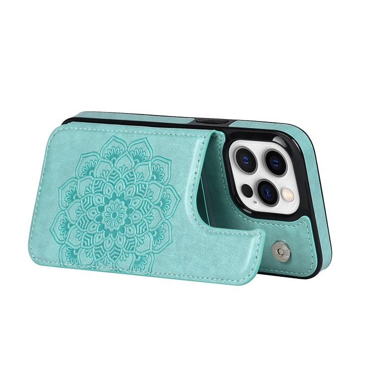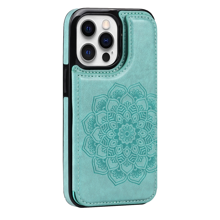 Funda Trasera iPhone 13 Pro Cuero Doble Hebilla Mandala Ranuras Tarjetas Soporte Marco Fotos (Verde)
