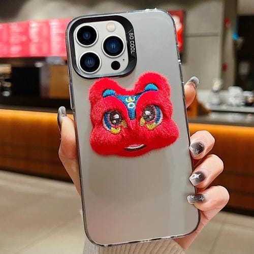 Funda para teléfono iPhone 13 Pro Max Lion Dance Plush Doll Año Nuevo (Gris Back Red Lion)