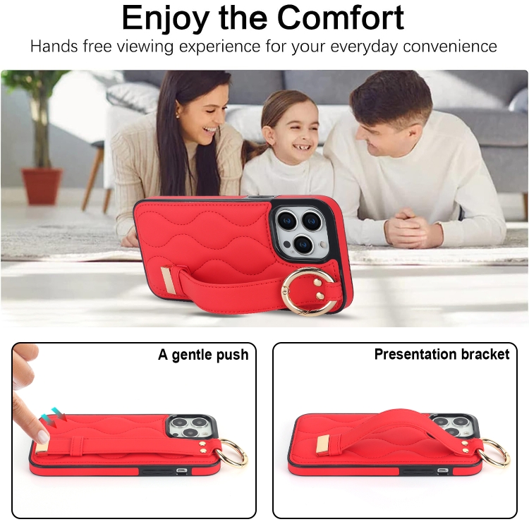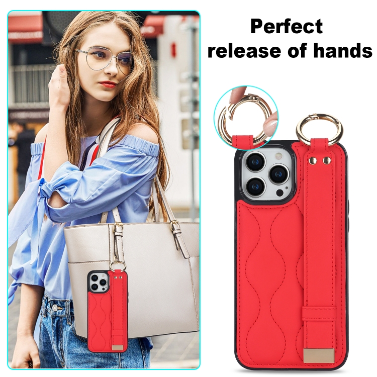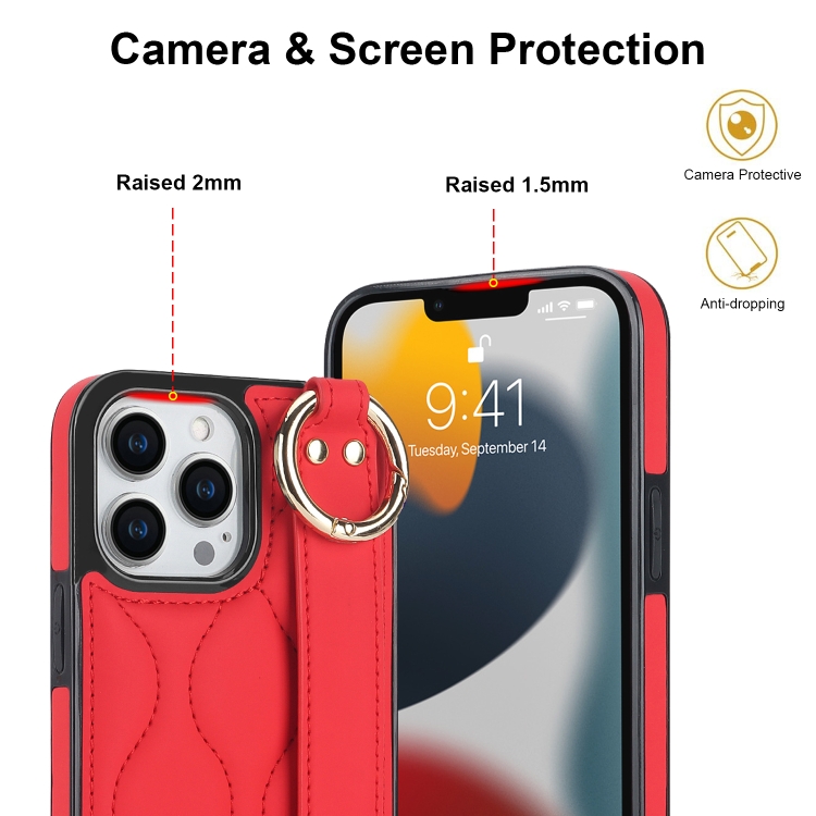 Funda para teléfono iPhone 13 Pro Max Antideslizante Cobertura Completa Anillo Pu con Muñequera (Rojo)