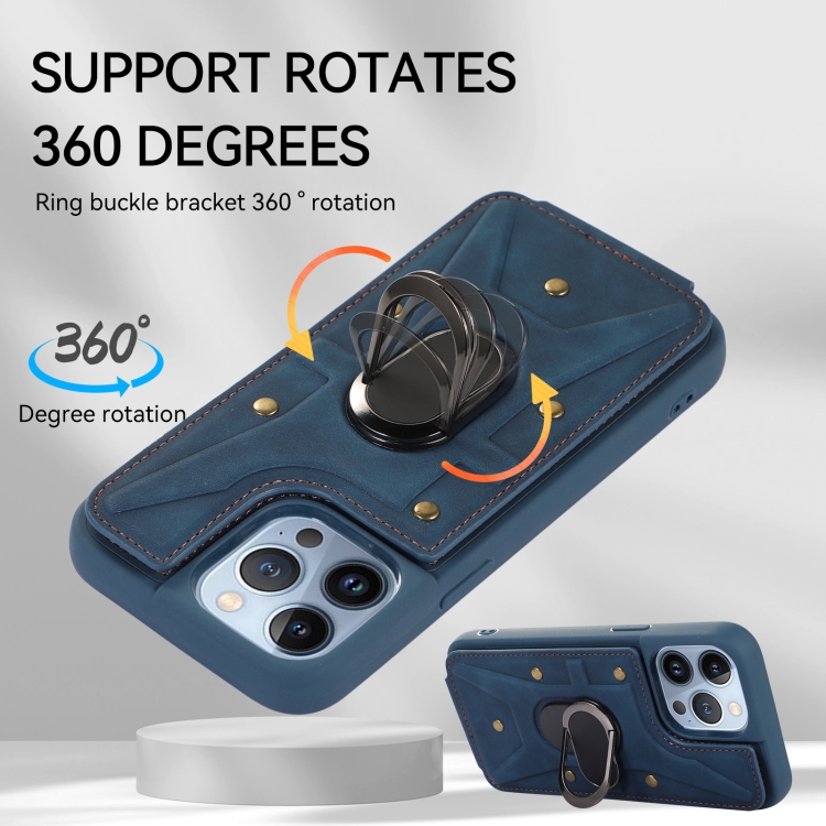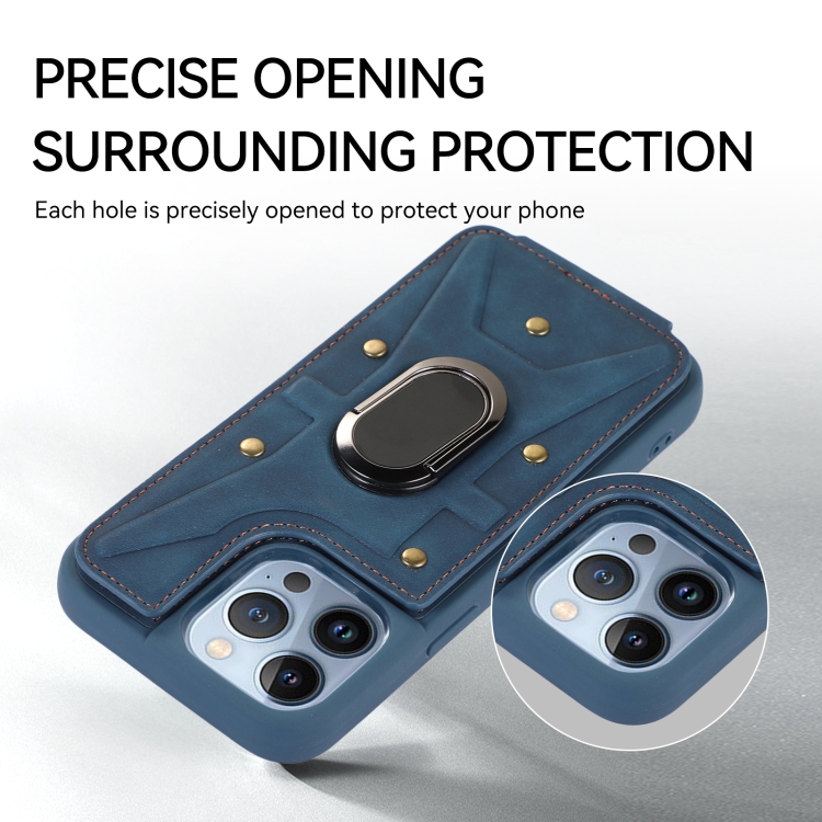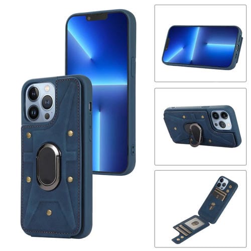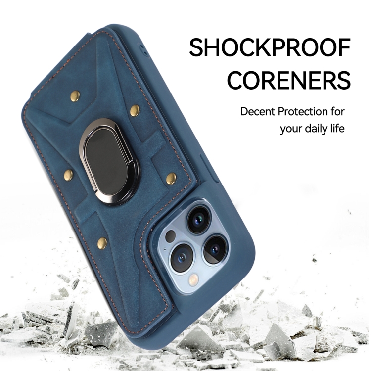 Funda para iPhone 13 Pro Max Armor Ring Wallet Tapa Trasera (Azul)