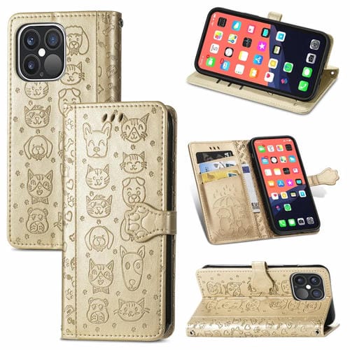 Estuche para iPhone 13 Pro Max Cute Cat And Dog Cuero Tapa Horizontal Soporte Ranuras Tarjetas Billetera Cordón (Dorado)