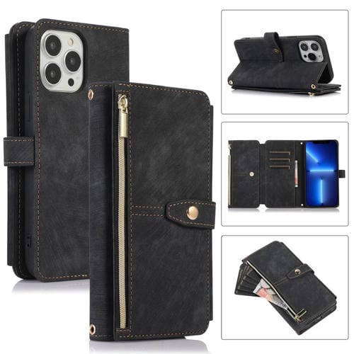 Funda para iPhone 13 Pro Max Dream 9-Card Wallet Zipper Bag de Cuero para Teléfono (Negro)