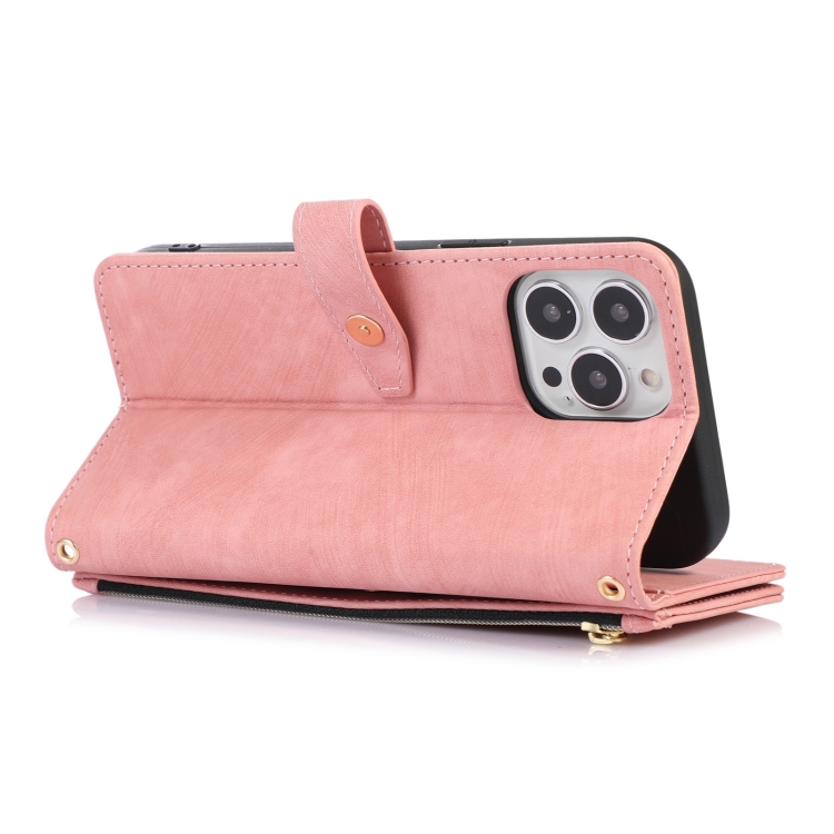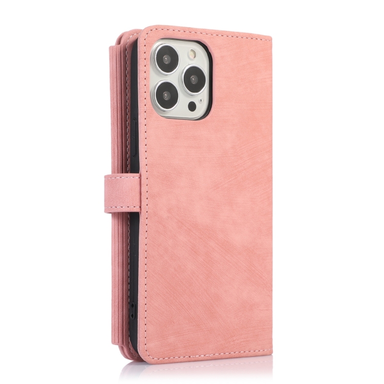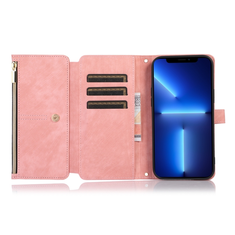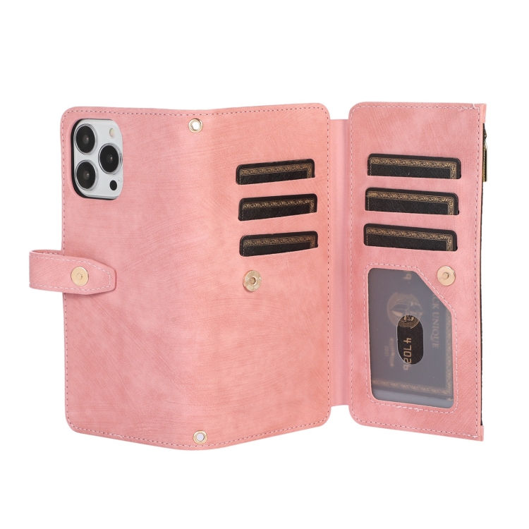 Funda de Cuero para Teléfono iPhone 13 Pro Max Dream 9-Card Wallet Zipper Bag (Rosa)