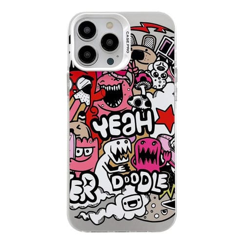 Funda protectora para iPhone 13 Pro Max Electroplated Silver Series con dibujos animados