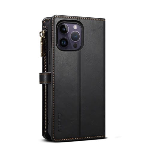 Funda de Cuero Eseble Star Series para iPhone 13 Pro Max con Lanyard Zipper Wallet RFID (Negro)