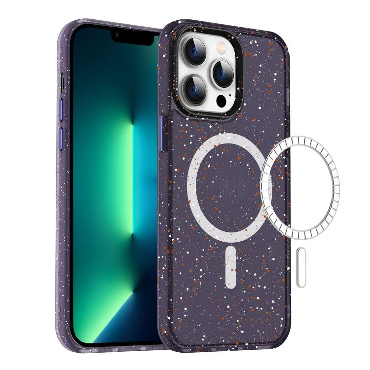 Estuche de teléfono híbrido TPU Magsafe para iPhone 13 Pro Max con salpicaduras de tinta colorida (Púrpura)
