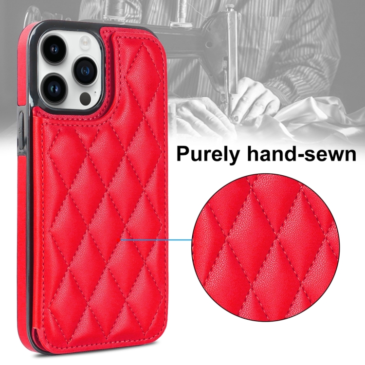 Estuche para Teléfono iPhone 13 Pro Max Cuero PU Rombal Doble Hebilla (Rojo)