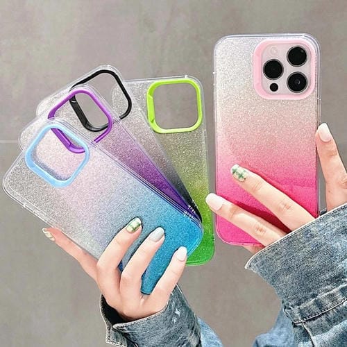 Estuche para Teléfono iPhone 13 Pro Max PC con Purpurina Degradada Imd de Doble Cara (Rosa)