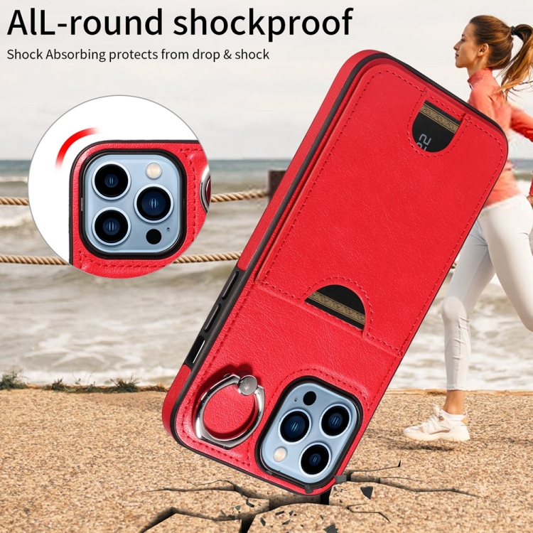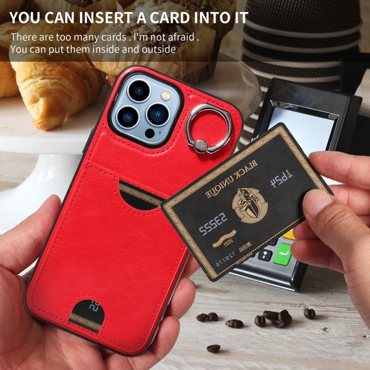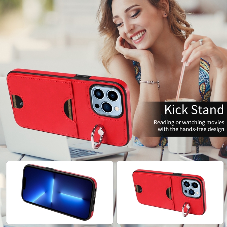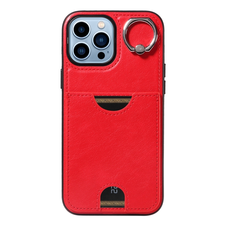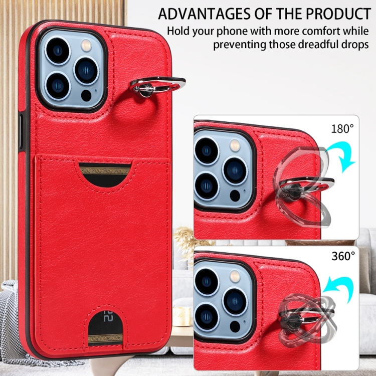 Funda para Teléfono iPhone 13 Pro Max Soporte Anillo Ranura Tarjeta Textura Pantorrilla (Rojo)