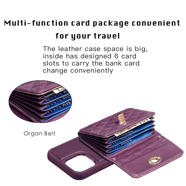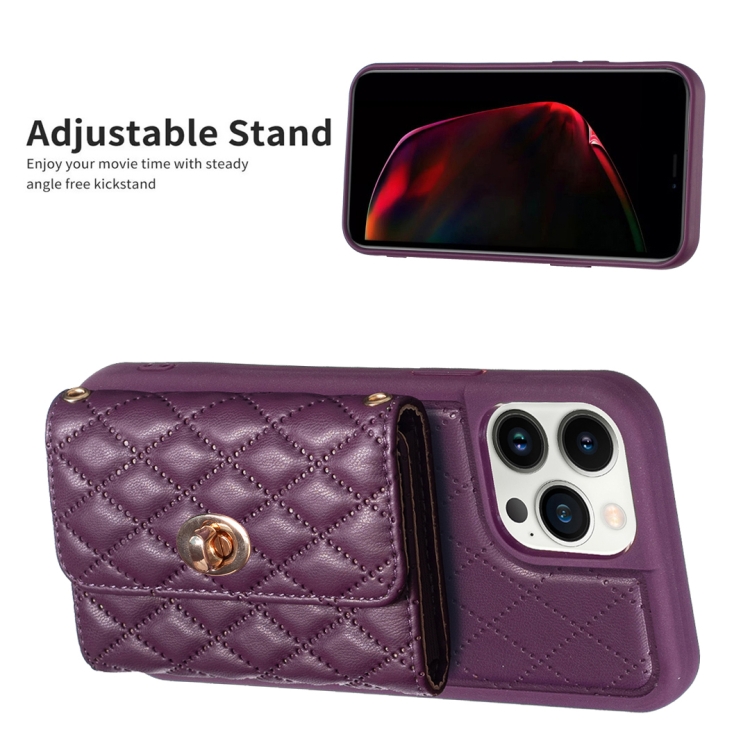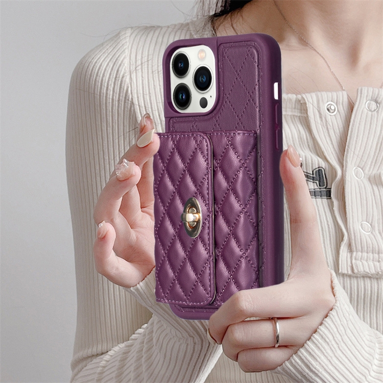 Funda Cartera para iPhone 13 Pro Max Rombico Horizontal Metal Hebilla Cuero (Morado Oscuro)