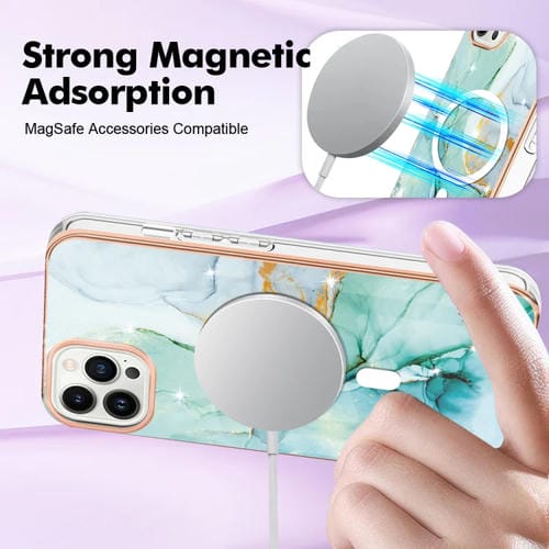 Funda para iPhone 13 Pro Max Marble Pattern Dual-Side Imd Magsafe TPU (Verde)