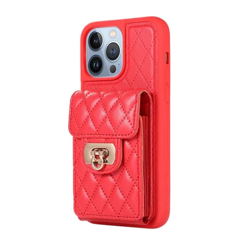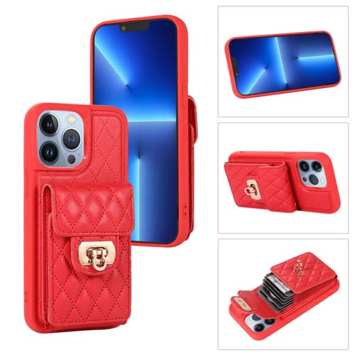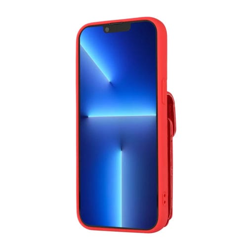 Funda para teléfono iPhone 13 Pro Max ranura para tarjeta cuero (Rojo)