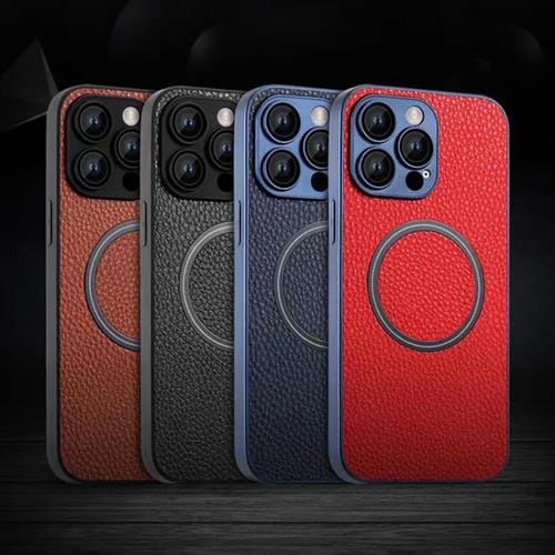 Funda para iPhone 13 Pro Max Skin Feel Litchi Texture Magsafe Magnética (Negro)