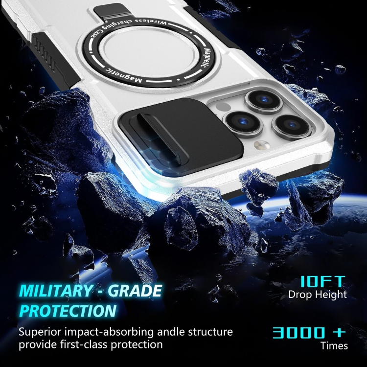Funda para teléfono iPhone 13 Pro Max Sliding Camshield Magsafe Holder TPU Hybrid PC (Negro Blanco)
