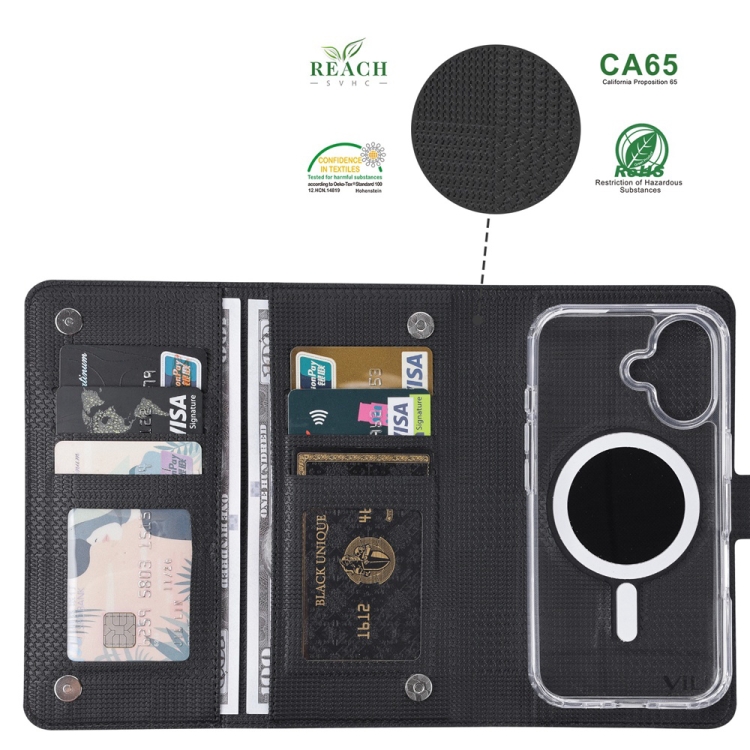 Funda para iPhone 13 Pro Max Vili Gha-C Series RFID Magsafe de Cuero con Tapa Magnética (Negro)