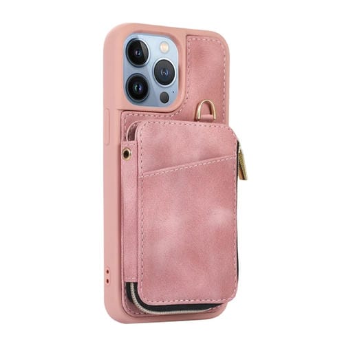 Funda para Teléfono iPhone 13 Pro Max Zipper Card Bag Contraportada (Rosa)