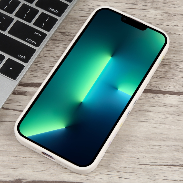 Funda de Silicona Líquida para iPhone 13 Pro Milk Tea Astronaut Pattern (Blanco Marfil)